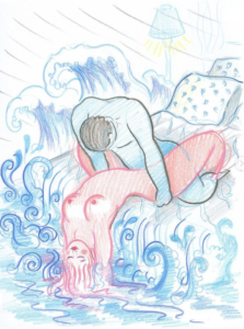 el agua vive cayendo por la pila bautismal de tus pechos.